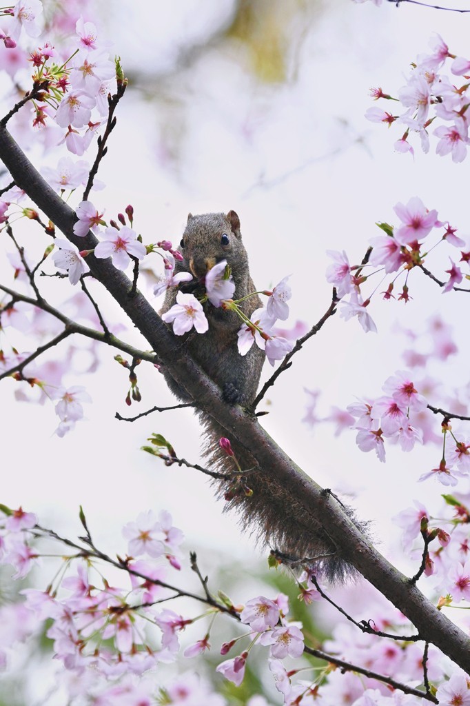 桜の花が大量に落ちていると、その上で食事していることがあります。