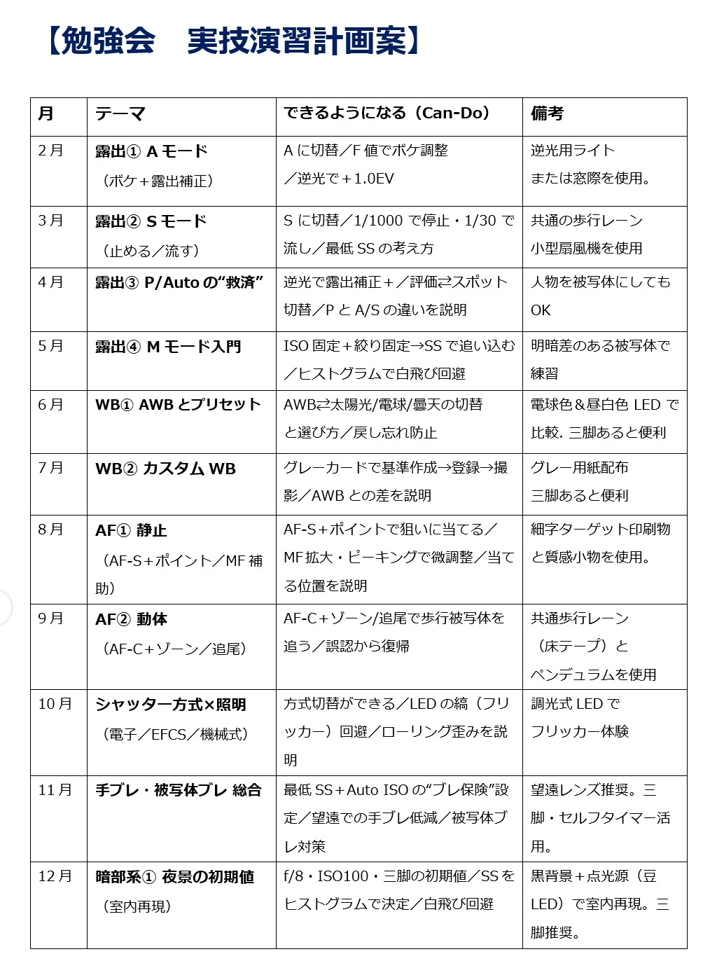 5) 11月,12月,1月はイベントが多いためホームページで座学実施し