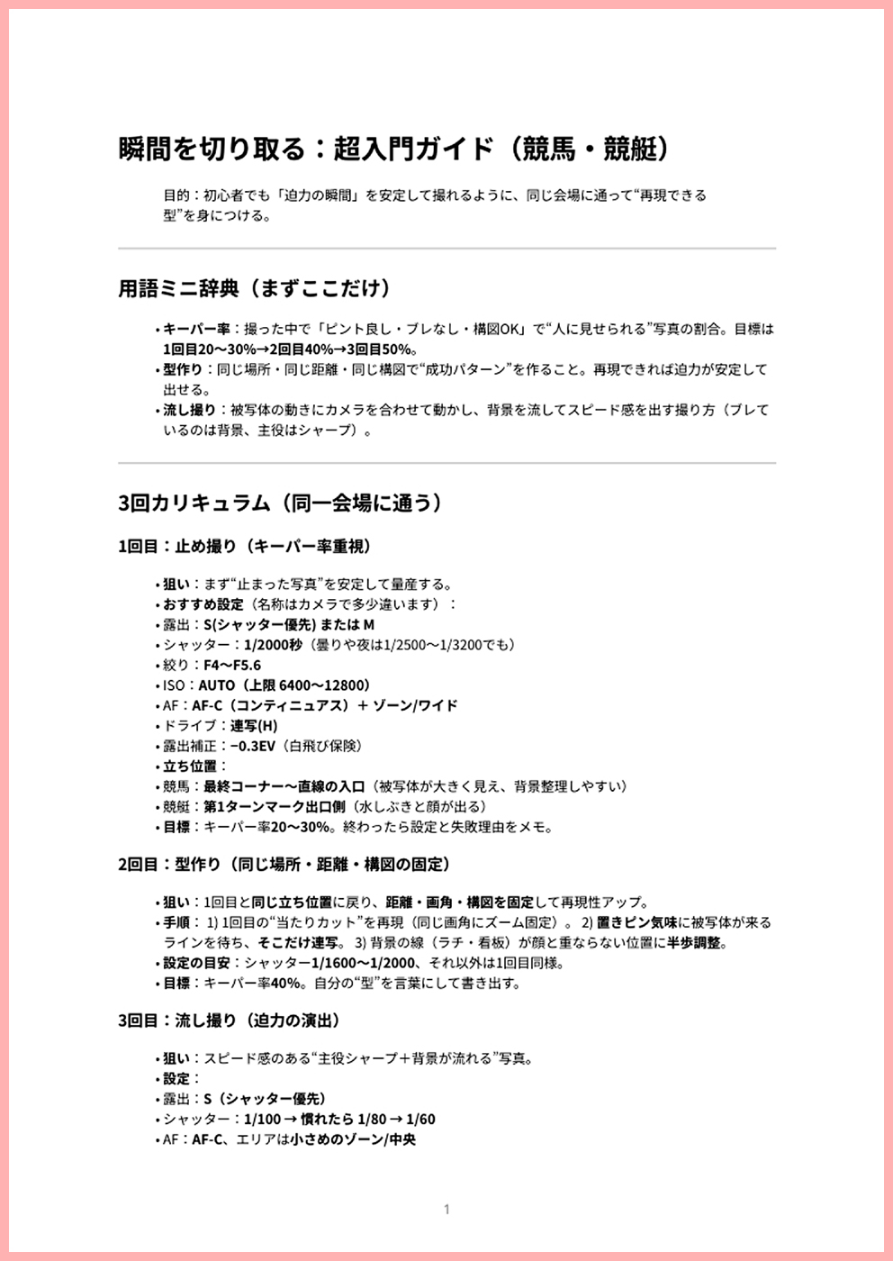 🙋♂️『瞬間を切り取る』トレーニングテキスト(高速移動物体 競馬・競艇など)