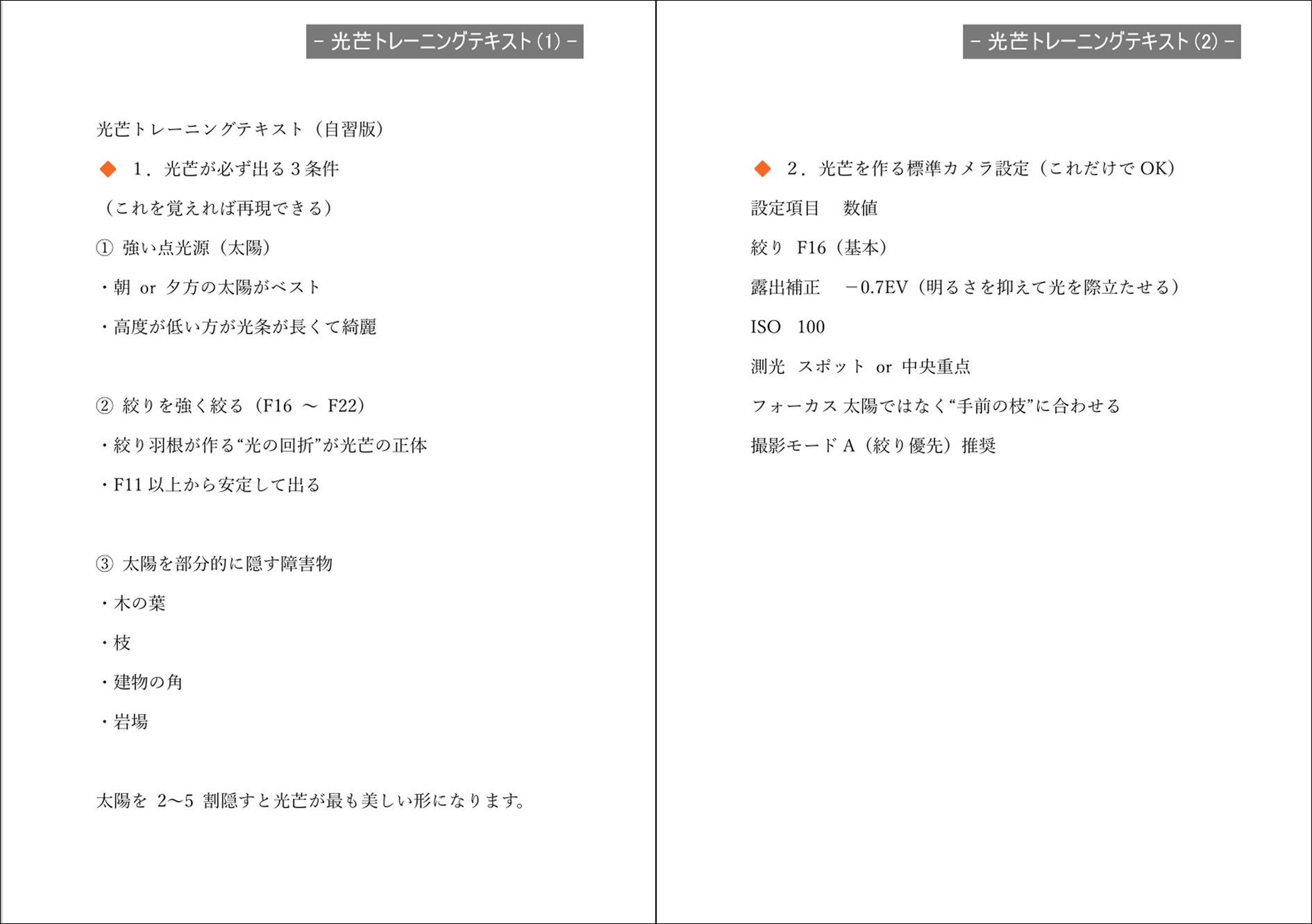 【山口正則 勉強会部長】からの、光芒の撮り方をまとめたテキストです。